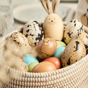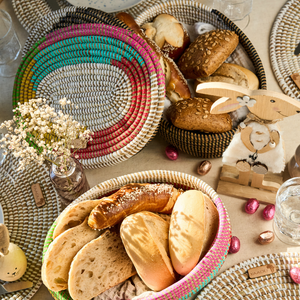 Handgeflochtene Körbe für Brunch, frische Früchte und kleine Osterüberraschungen.